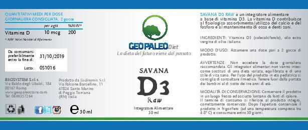 Savana D3 Raw: Fonte di Vitamina D3 (Colecalciferolo)