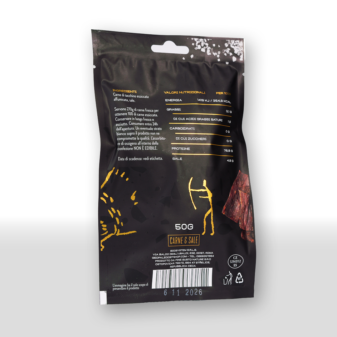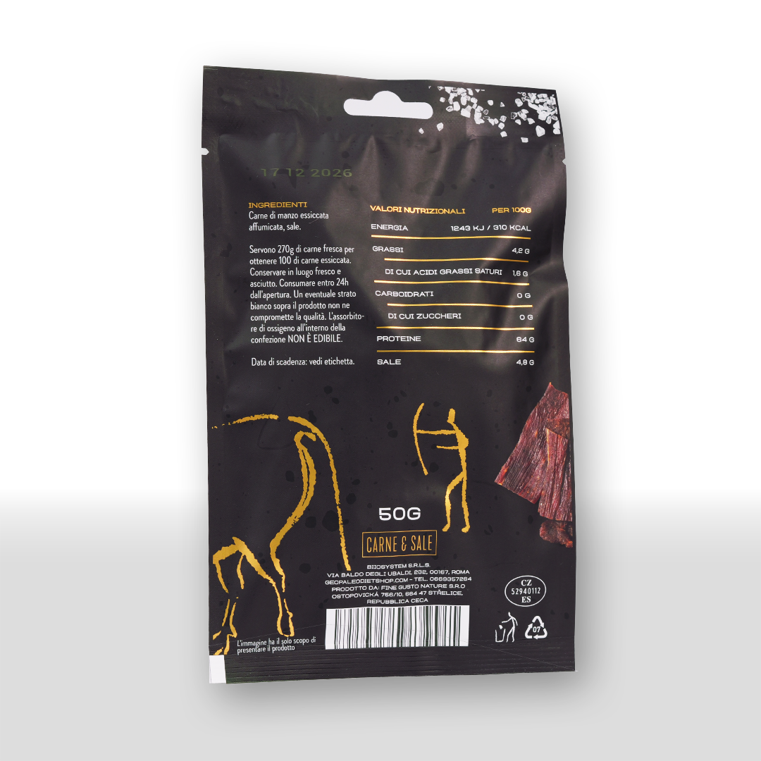 Carne&Sale è fantastico non solo per chi segue la GeoPaleoDiet e/o la Chetogenica, ma anche per chi pratica BIIOSystem, CrossFit e fitness in generale. È ideale per chi necessita di un surplus proteico ad alto valore biologico, sano, privo di conservanti e comodo da portare in ufficio o in vacanza.